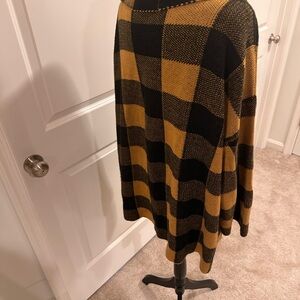 This cozy cardigan showcases a vibrant patchwork design with a bold geometric pattern in dark mustard yellow, and black. Crafted from a thick textured material, it features an oversized fit with dropped shoulders and long sleeves, making it ideal for a relaxed and comfortable look.