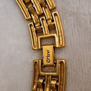 Vtg MONET 1980s Matte Goldtone Interlocking Panther Collar Necklace