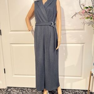 New Calvin Klein Stripe Belted Sleeveless Jumpsuit