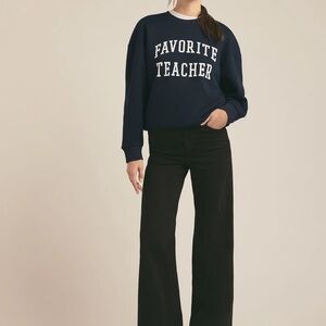 Navy sweatshirt with 'Favorite Teacher' text by Favorite Daughter.