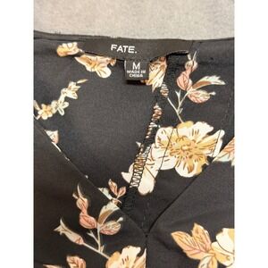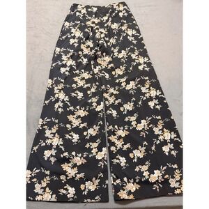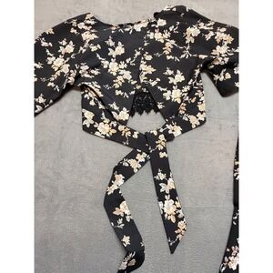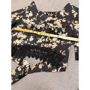 FATE Floral Boho Whimsical Print Crop Top Crotchet Wide Leg Pants Set Black SZ M