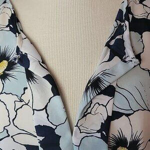 ANN TAYLOR FACTORY Blue Floral Pleated Keyhole Cap Sleeve Shell Office Top L