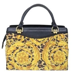 Gianni Versace Animalier Barocco Leopard Medallion Top Handle Vintage COA 90s