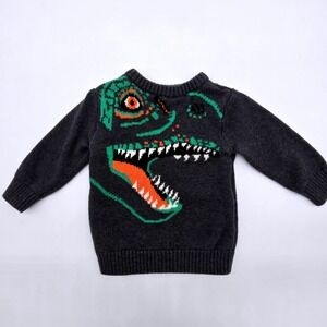 Old Navy Boys Dinosaur Graphic Knit Sweater 12 18 Months Charcoal Gray