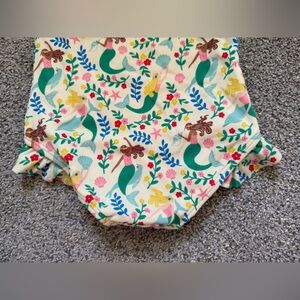 Color is white with multicolor mermaid print geometric pattern design