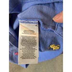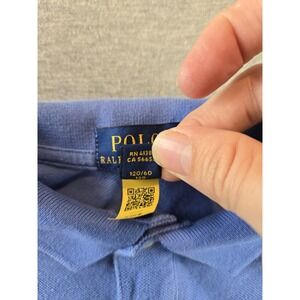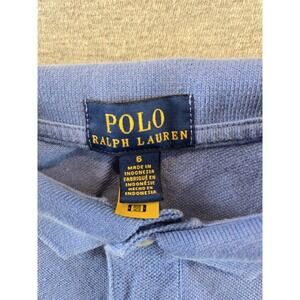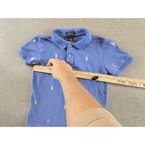 This Polo Ralph Lauren shirt is a stylish and classic choice for young boys size 6. The blue shirt features the iconic polo pony logo in a playful all-over print, adding a pop of color to the preppy and timeless design. Made from comfortable cotton mesh fabric, this short sleeve shirt is perfect for everyday wear or special occasions, exuding a sense of elegance and sophistication in a colorful theme.