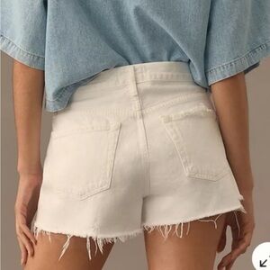 Abercrombie & Fitch High Rise The Mom Short White Denim Shorts Raw Hem sz 28