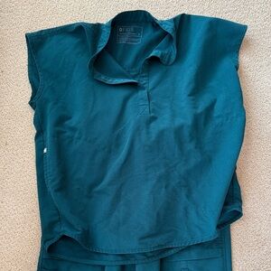 Dark green scrub set by Figs. Features a relaxed fit and handy pockets. Color is more dark/forrest green than pictured with the lighting.