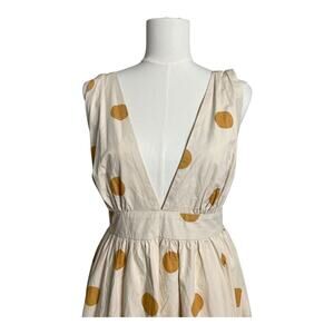 Petal & Pup Polka Dot Midi Dress Casual Plunge V-neck Full Skirt Medium Sundress