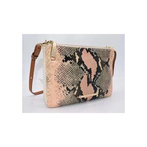 Chic, sleek and croc-embossed all over, the Brahmin Perri Crossbody in Rose Solstice is a stylish and practical handbag designed for women. This small, rectangular bag features a zip closure and a brown leather crossbody strap, making it perfect for on-the-go occasions. The exterior is made of leather with a rose exterior color and gold-plated hardware, while the interior is lined with beige fabric. Additionally, this bag comes with a detachable strap, and original dust bag, adding to its value and convenience. The animal print pattern and rose theme make this Brahmin Perri Crossbody a chic and versatile accessory for any outfit.