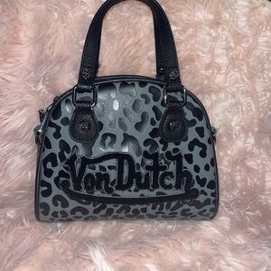 Chic Von Dutch satchel with a bold leopard pattern. Perfect for a stylish look.