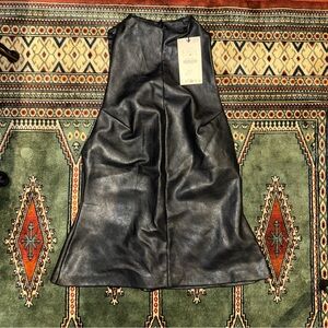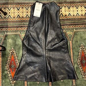 NWT Zara Black Sleeveless mock neck Faux Leather Zip back Top - size Large