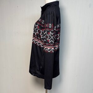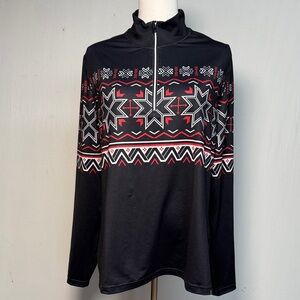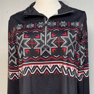Snowflake or Nordic print top by Krimson Klover. This mid-weight base layer top is great for any outdoor winter activities. It measures 22 inches from armpit to armpit and the length is 24 inches. It does show some mild signs of wear specifically at the seams.