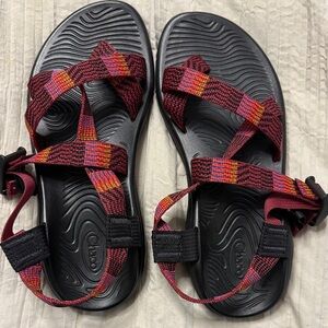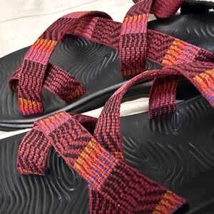 Vibrant Chaco sandals with multicolor straps. Perfect for everyday comfort.