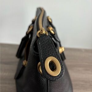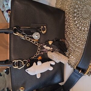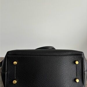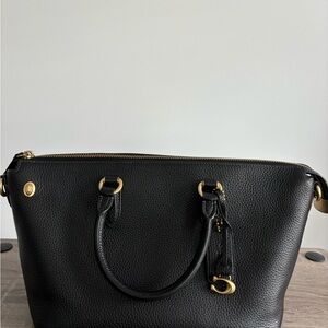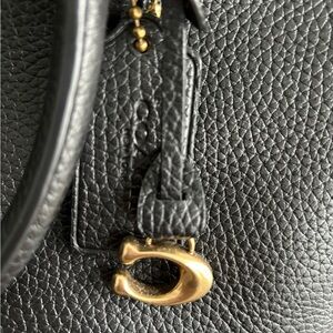 coach Cara black pebbled leather. reposh. used a few times, ready for something new. comes with long strap. and hangtags. doesn't come with charms in the last picture, just wanted to show how i styled it. this is $295 new!!!! #coach #cara #satchel