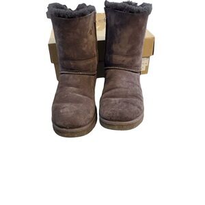 Chic UGG boots in chocolate corduroy on the bow. Adorned with charming bows on the back. These UGGS are still in good shape. They’re extremely comfortable and warm. I got complements on these boots every time I wore them. Make me an offer I can’t resist!!! ☺️