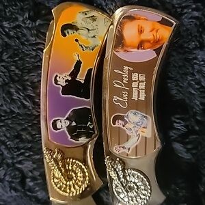 Set of two pocket knives featuring Elvis Presley. Vibrant images with beautiful accents. Perfect for collectors or lovers of elvis!