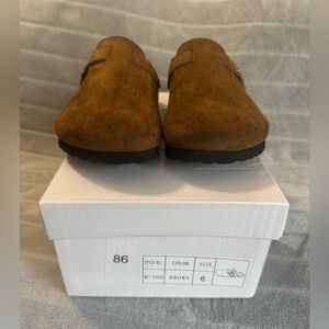 Milocaca Brown Adjustable Buckle Faux Suede Clogs Size 6