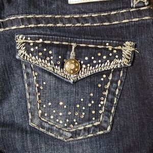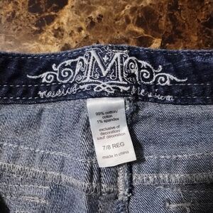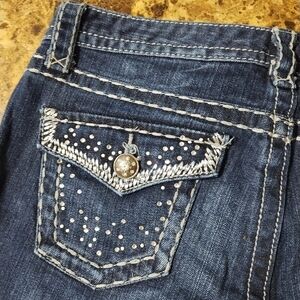 Beautiful pair of Maurices Premium Sparkly blue jean capris, size 7/8. Waist measures about 31 inches across and has a 22 inch inseam. Beautiful sparkly rhinestones on front and back. Beautiful pair!