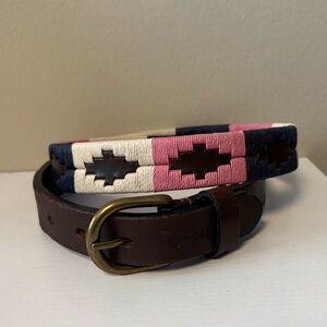 Add a touch of elegance to your outfit with this stylish pink and black patterned belt. Perfect for any occasion.