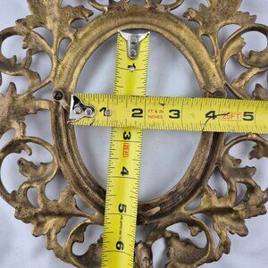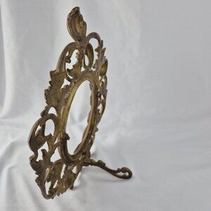 Vintage Oval Brass Ornate Table Top Picture Frame Swivel Easel Stand Scroll Work