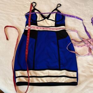 Privy Blue Cream Black Bodycon Mini Dress Size Small VNeck Spaghetti Strap New