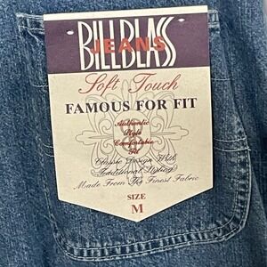 New With Tags vintage Bill Blass denim overall shorts, also referred to as shortalls. They are made from 100% cotton denim with a medium to dark wash. The style is often associated with the 1990s and has a "carpenter" or utility-chic vibe.