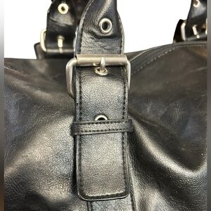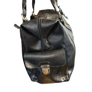 Faux Leather Weekender Travel Black Duffle Bag Excellent Clean Condition