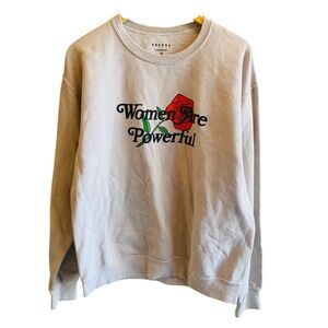 Beige crew neck sweatshirt by One DNA from PAC Sun with Women Are Powerful. EUC. Size small measures shoulder to hem 26”, armpit to armpit 23”