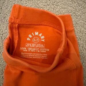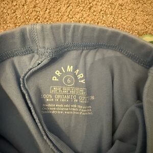 Bright sleepwear leggings by Primary. Made from 100% organic cotton. Comfortable and stylish. Sizes for each color/pant shown in photos. The tree print pant is a size 6 but seems to run a bit longer (more on 6/7 size/length). I did not see any visible stains or holes in any of the pants. All in great condition.