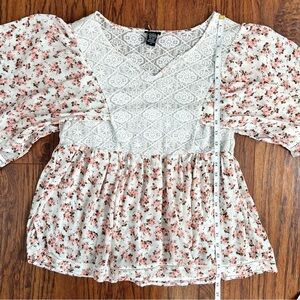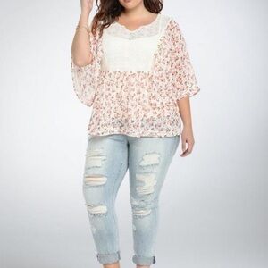 Title: Torrid Chasing Ditsy Floral Lace Inset Chiffon Blouse Pink and White Size Large