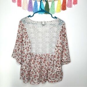 Torrid Chasing Ditsy Floral Lace Inset Chiffon Blouse Pink and White Size Large