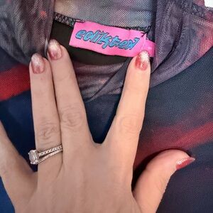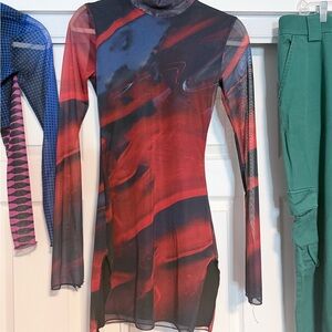 Edikted Sparks Fly Mock Neck Long Sleeve Mesh Minidress