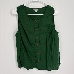 J. Crew Factory Linen Blend Button Front Shell Tank Green