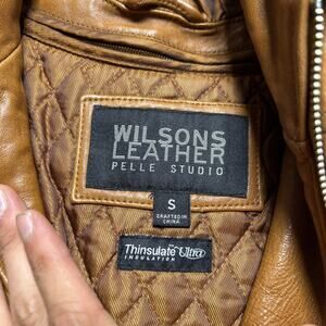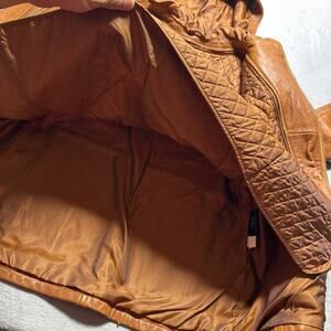 Vtg Heavyweight Leather Hoodie Jacket Men Small Wilsons Hooded Quilt line Brown