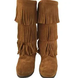 Minnetonka 3-Layer Fringe Boots/Moccasins NEW