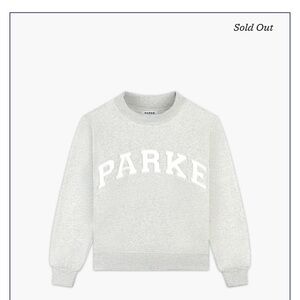Authentic Parke mock neck sweatshirt Classic gray with white lettering. So pretty stay nice and cozy cute and comfy. Will provide proof of authenticity if requested. Purchased from official Parke website. If you have tried to purchase Parke then you know how fast they sell out and how hard it is to get one. I have several in my listings and I will be posting a couple more over the next few days (trying to decide which one to keep) the rest will be for sale.