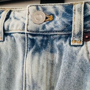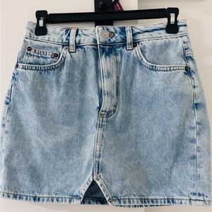 Chic denim mini skirt by French Connection. Light blue wash with classic stitching. Perfect for casual style.