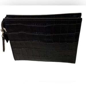 Black croc embossed vegan leather with silver hardware.
