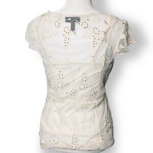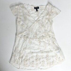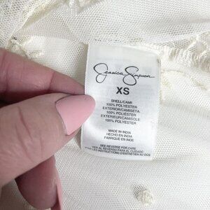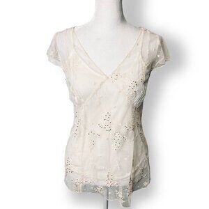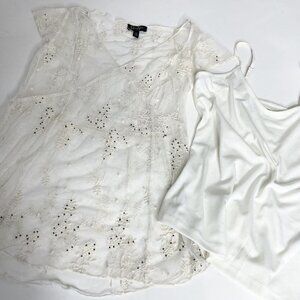 NWOT Jessica Simpson XS Cream Lace Beaded V Neck Sheer Blouse Sheer w/Camisole