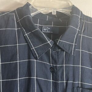 Gap Black and white plaid button up blouse size XL