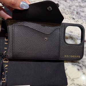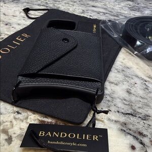 NWT! Stylish Bandolier phone case in black. iPhone 16 Pro Max . Features a leather textured design and detachable strap. These are amazing! Includes wallet flap and ideal for secure and chic phone carrying(concerts, travel, etc)