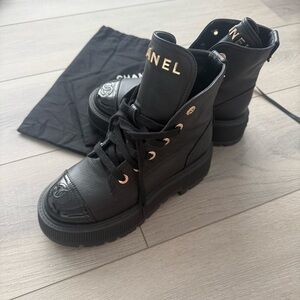 CHANEL Grained Calfskin Lace Up Combat Boots