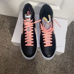 Nike Black Leather Coral Blazer Mid '77 Customized Sneaker Shoes New