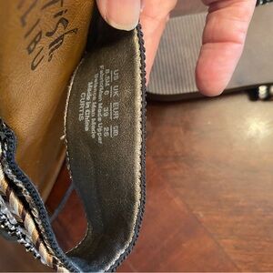Stylish Blowfish sandals with black strap and brown base. Features intricate woven detailing. Perfect for casual wear. Size 8.5M