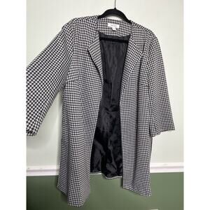 Nine West Open Front Houndstooth Lapel Blazer Jacket Black White Womens Large