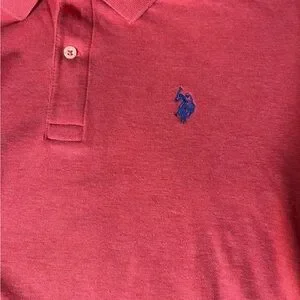 Classic red melon color polo shirt with embroidered logo. Comfortable and stylish for everyday wear.