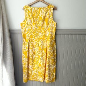 Brooks Brothers • floral dress • midi dress • sleeveless dress • yellow floral dress • spring summer dress • casual dress • work dress • garden party dress • women’s size 14 • preowned designer
