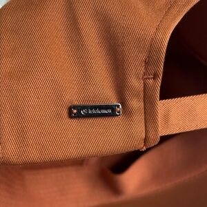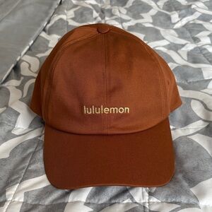 Stylish rust cap with gold embroidered logo. Ideal for casual wear.