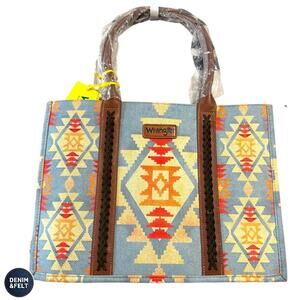 NEW Wrangler Southwestern Aztec Print Canvas Large Tote Shoulder Bag Light Blue